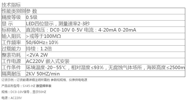 SX45-HZ變頻器專用數(shù)顯頻率表,通過測量變頻器輸出的DC0-10V 0-5V或0-20mA,模擬量信號,來顯示變頻器輸出的轉速或頻率。適用于機械設備.機電設備.自動化設備.變頻器控制柜等,是變頻器配套使用