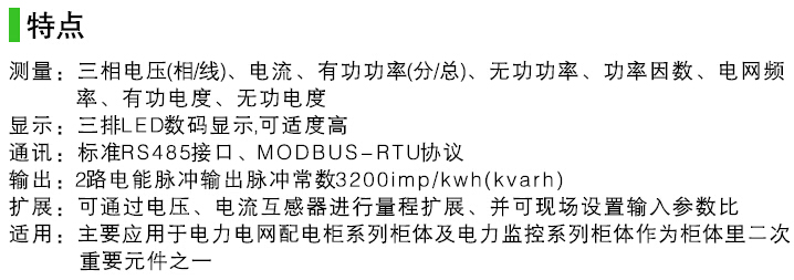 視在功率 有功電能 無功電能(計(jì)量)RS485通訊 三排LED數(shù)碼管顯示,96*96mm外形