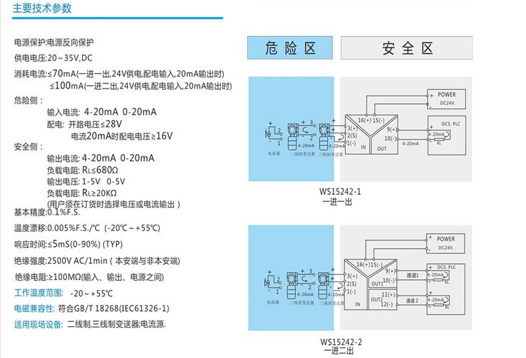 防爆安全柵 輸出范圍:4-20mA標(biāo)準(zhǔn)信號