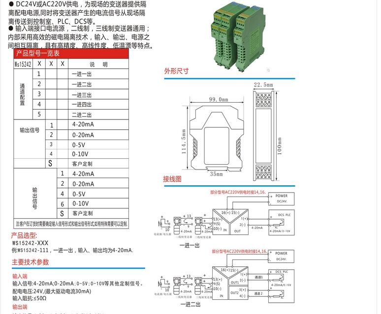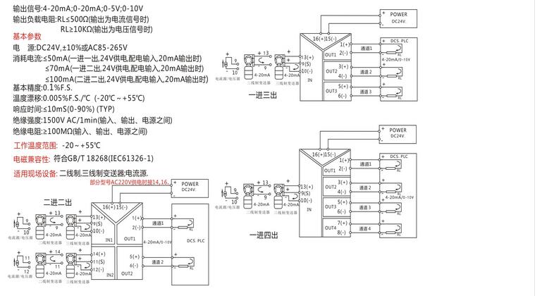 輸入輸出方式:一入一出、一入二出、一入三出、一入四出、二入二出輸出范圍:0-10V、4-20mA、0-20mA、0-5V等用戶需要的標(biāo)準(zhǔn)信號(hào)