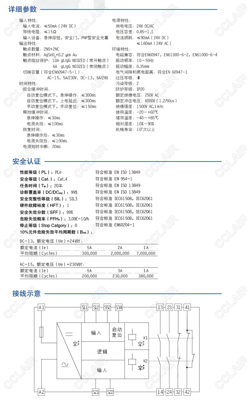CZSR8001-2A2B-P是適用于安全光幕輸入,具有2路NO(常開)安全輸出觸點(diǎn)和2路NC(常閉)輔助輸出觸點(diǎn)的安全繼電器。它可選擇單雙通道操作,手動(dòng)或自動(dòng)復(fù)位。