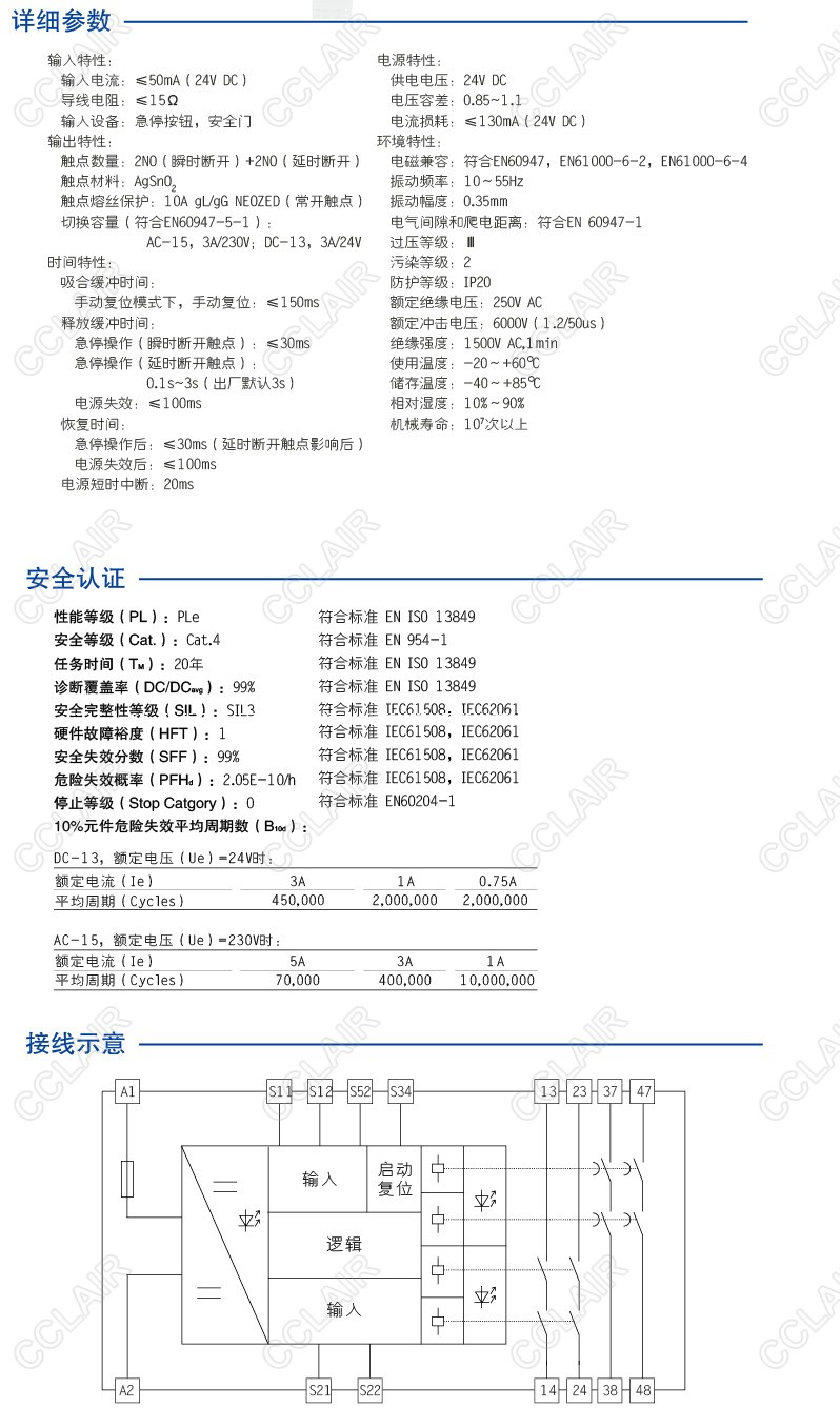 CZSR8002-2A2AT(M)是適用于急停按鈕、安全門控開關(guān)輸入,具有2路NO(常開)安全輸出觸點(diǎn)(瞬時(shí)斷開)和2路NO(常開)輔助輸出觸點(diǎn)(延時(shí)斷開)的安全繼電器。它可選擇單、雙通道操作,手動(dòng)復(fù)位,并具有通道間短路監(jiān)控,復(fù)位按鈕監(jiān)控功能。