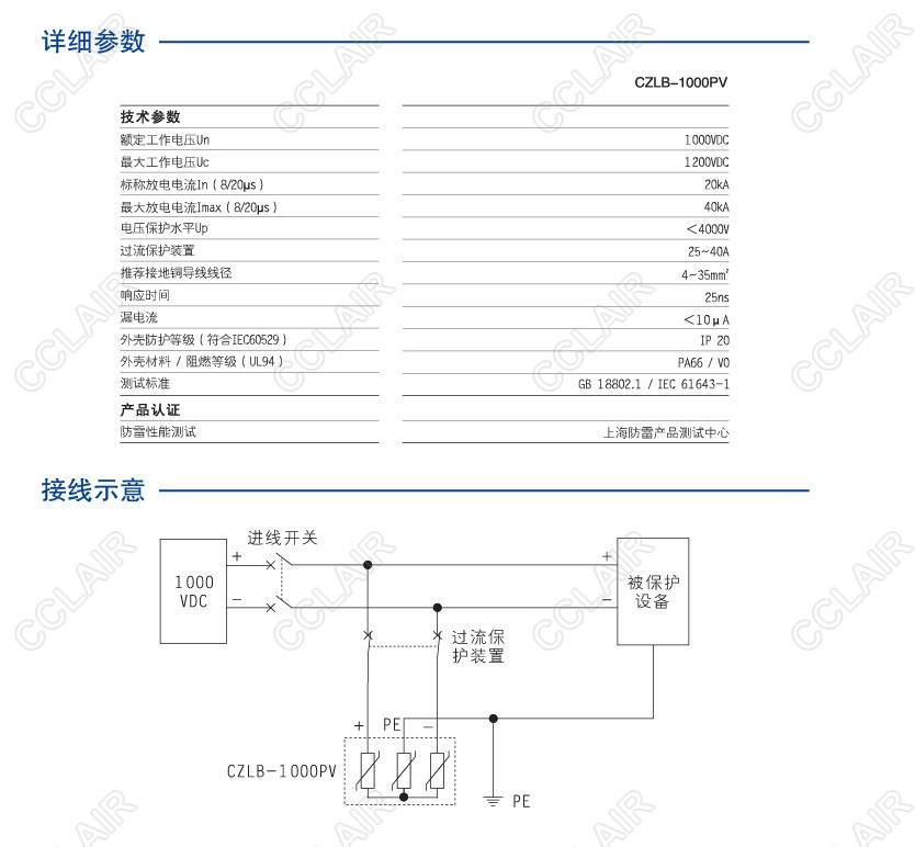 1000V直流電源型SPD,適合1000VDC光伏系統(tǒng),電涌防護(hù)模塊支持熱插拔,工作狀態(tài)指示窗口,具有遙信功能。