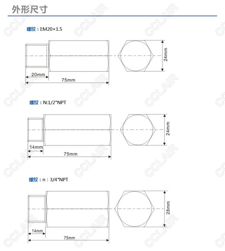 現(xiàn)場(chǎng)安裝型SPD,三線制,螺紋制式(訂貨時(shí)指定):M20×1.5、1/2″NPT、3/4″NPT,適合變送器、熱電阻、熱電偶、RS-485、RS-232、RS-422、流量計(jì)、電磁閥等現(xiàn)場(chǎng)設(shè)備的保護(hù),隔爆、本安防爆雙認(rèn)證。