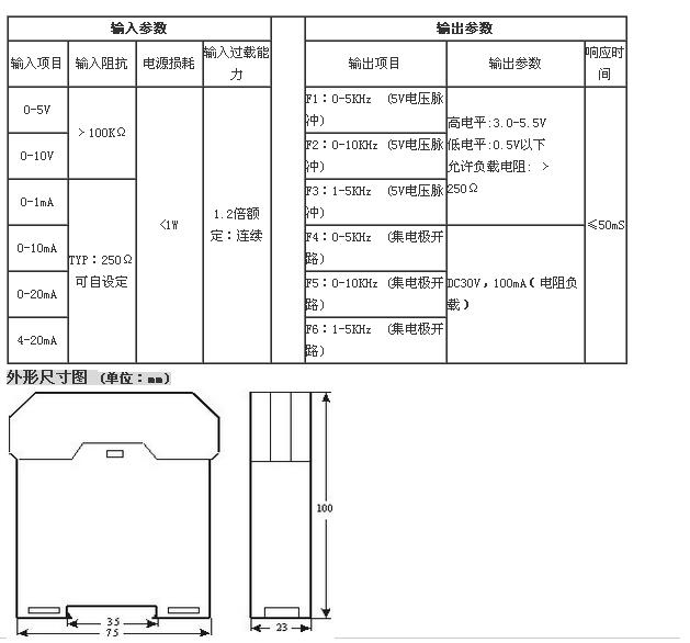 將直流輸入信號(hào)轉(zhuǎn)換成單位脈沖信號(hào)0-5KHZ/0-10KHZ