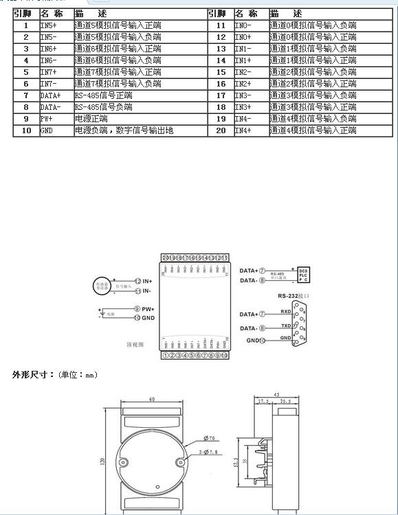 8路模擬信號(hào)轉(zhuǎn)RS-485/232,數(shù)據(jù)采集A/D轉(zhuǎn)換模塊