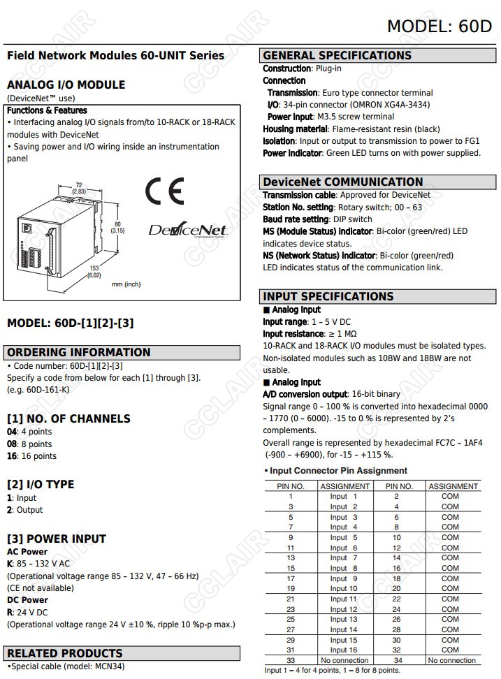 作為10-RACK和18-RACK等框架型隔離變換器的模擬量輸入和輸出接口,DeviceNet專用。