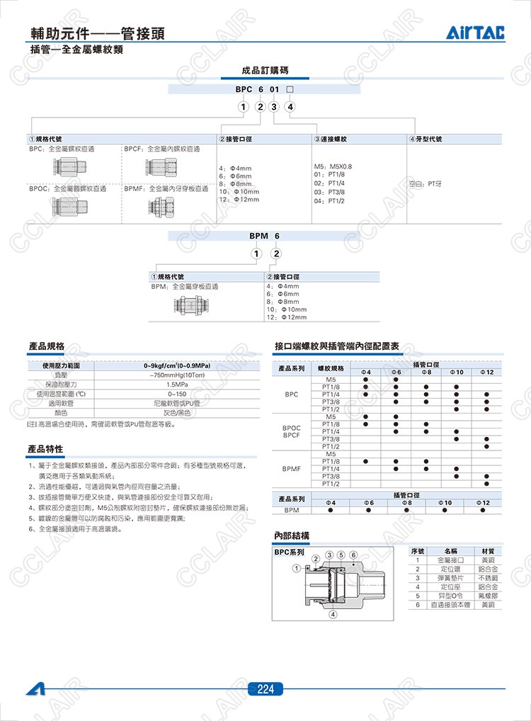 BPC4M5,BPC401,BPOC4M5,BPOC401,BPCF4M5,BPCF401,BPMF401,BPMF601,BPM4,BPM6,臺灣AIRTAC管接頭
