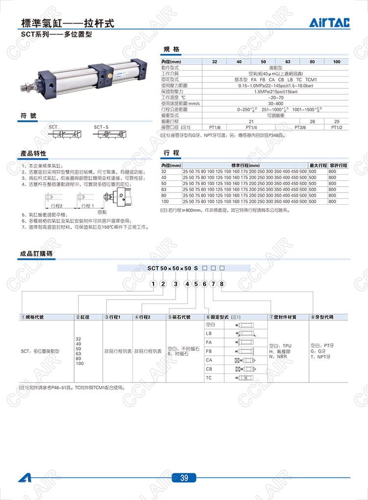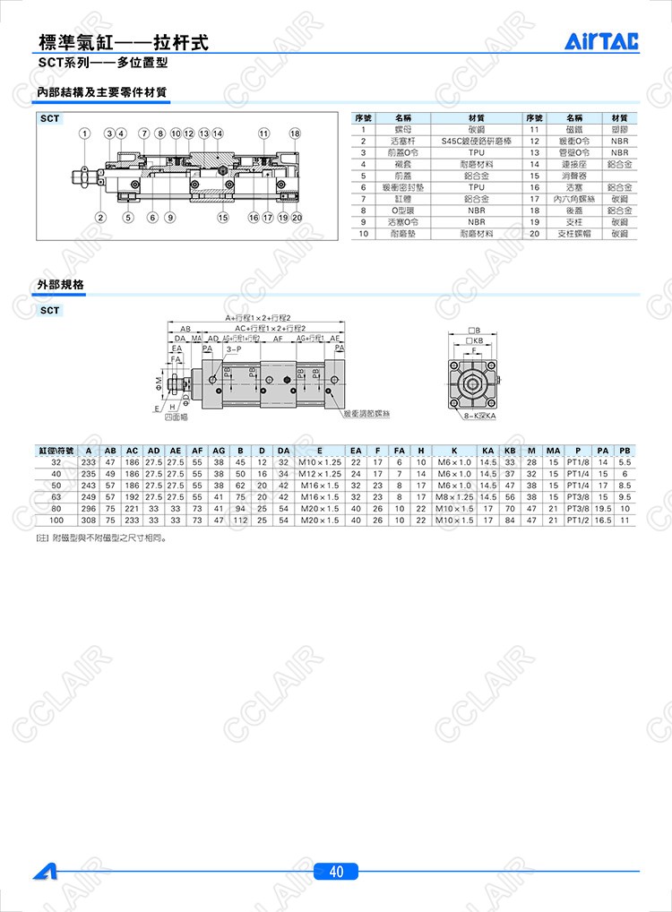 SCT32*25,SCT32*25-S,SCT32*50,SCT32*50-S,SCT32*75,SCT32*75-S,AIRTAC亞德客標(biāo)準(zhǔn)氣缸-拉桿式