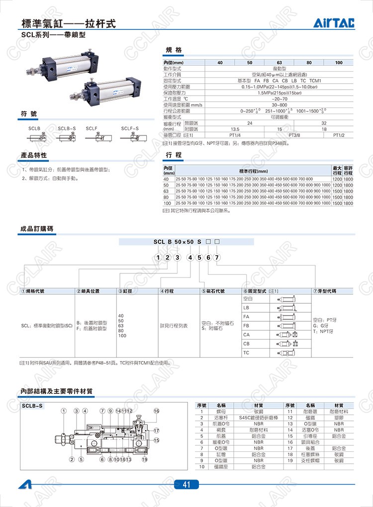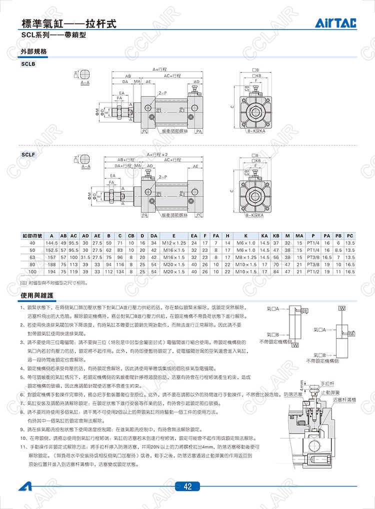 SCLB40*25,SCLB40*25-S,SCLB40*50,SCLF40*25,SCLF40*25-S,SCLF40*50,AIRTAC亞德客標(biāo)準(zhǔn)氣缸-拉桿式