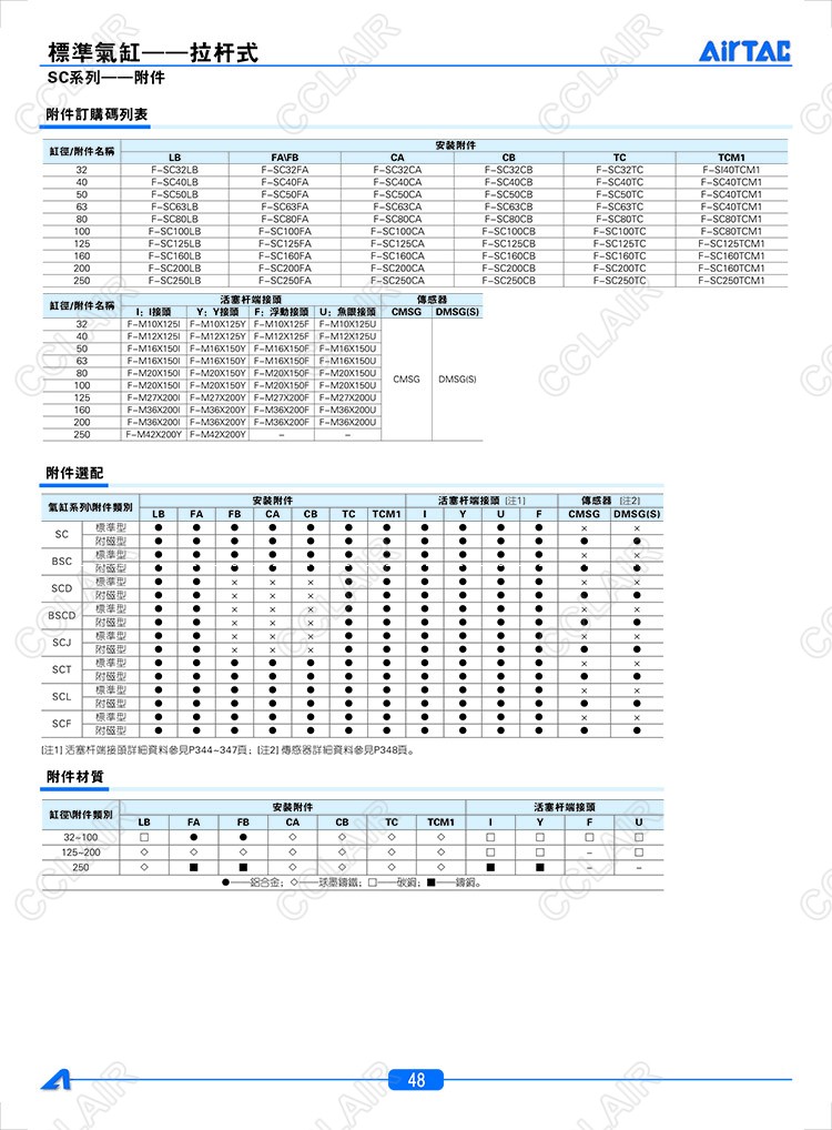 LB32,LB40,CA32,CA40,FA/FB32,CB32,CB40,TC32,TC40,TCM132,TCM140,AIRTAC亞德客標(biāo)準(zhǔn)氣缸附件
