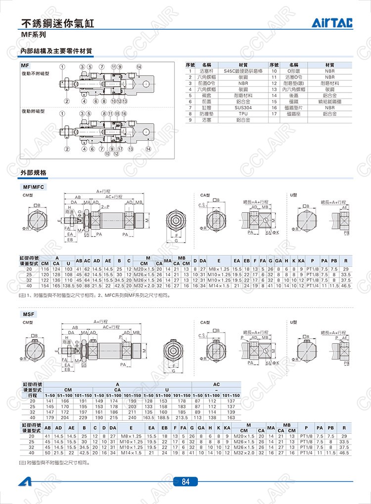 MF20*10-CA,MFC20*10-U,MFD20*10,MFJ20*10,MFCD20*10,MFCJ20*10,MSF20*10-CM,MTF20*10-U,AIRTAC亞德客迷你氣缸