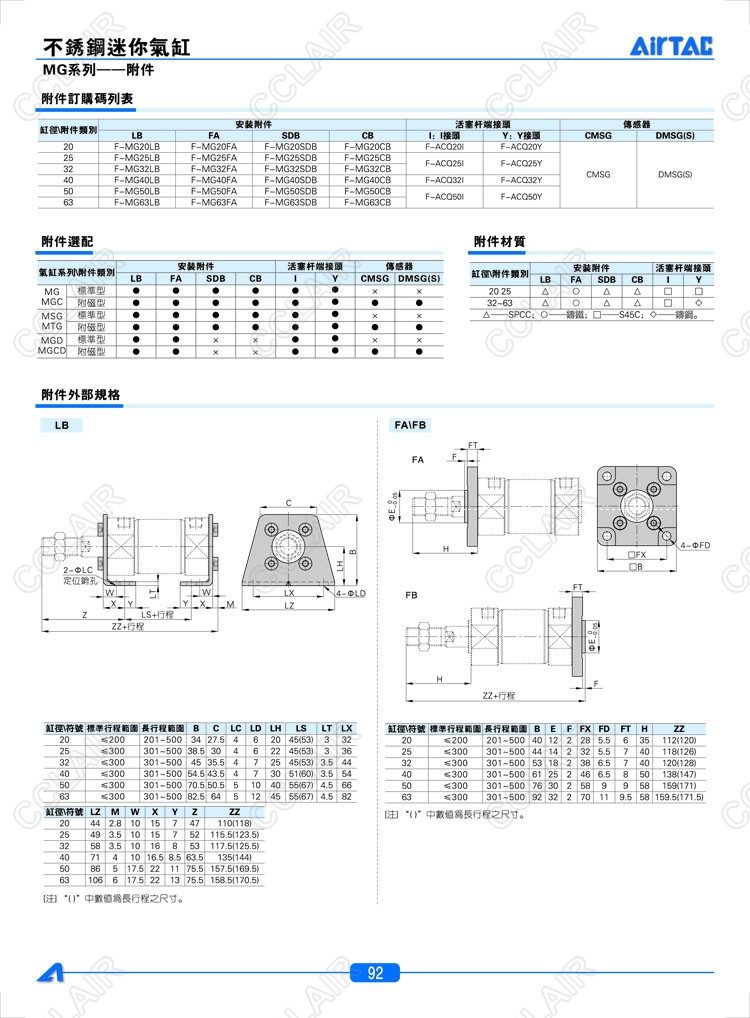 CB20,CB25,SDB20,SDB25,F-ACQ20I,F-ACQ25I,F-ACQ20Y,F-ACQ25Y,AIRTAC亞德客迷你氣缸