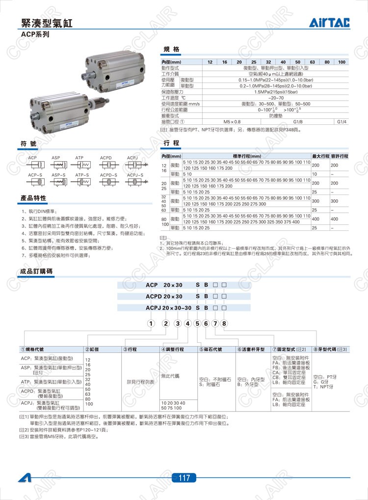 ACP12*5,ACP12*5-S,ASP12*5,ASP12*5-S,ATP12*5,ACPD12*5,ACPJ12*5,AIRTAC亞德客緊湊型氣缸