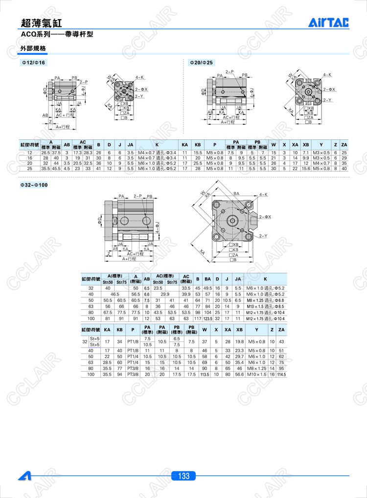 TACQ12*5,TACQ12*5-S,TACQ12*10,TACQ12*10-S,TACQ12*15,TACQ12*15-S,AIRTAC亞德客帶導(dǎo)桿型超薄氣缸
