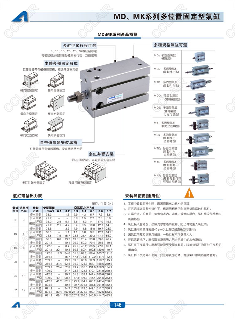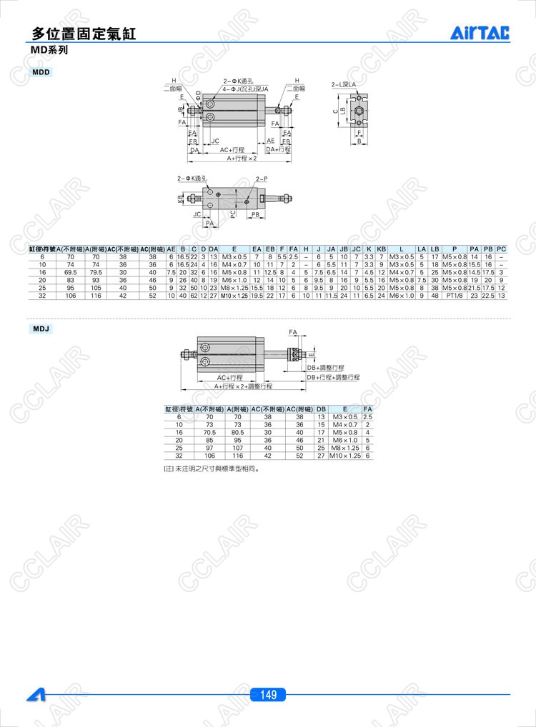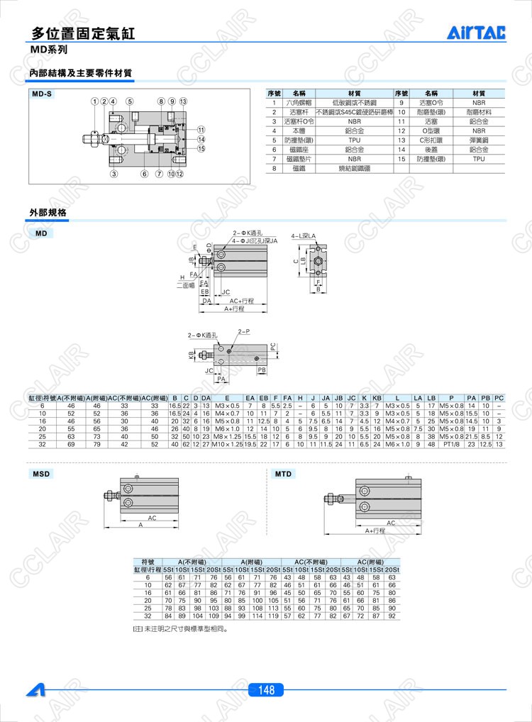 MD6*5,MD6*5-S,MSD6*5,MSD6*5-S,MTD6*5,MDD6*5,MDJ6*5,AIRTAC亞德客多位置固定氣缸