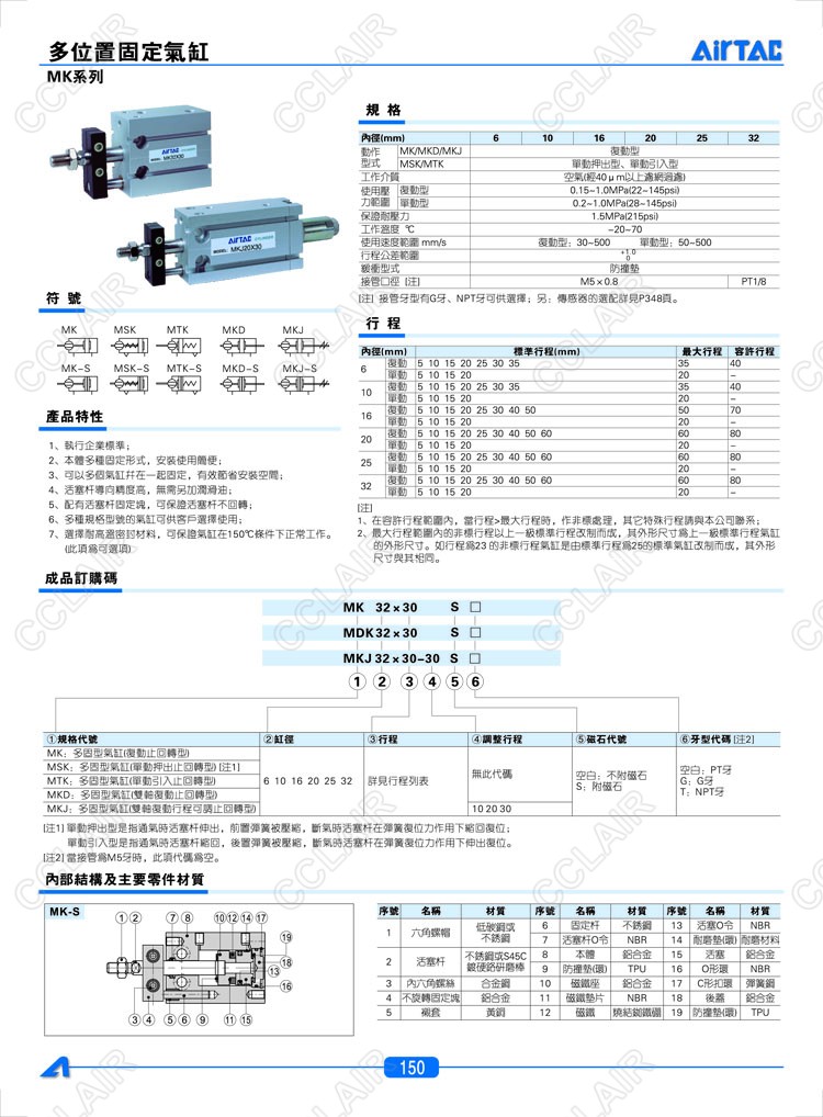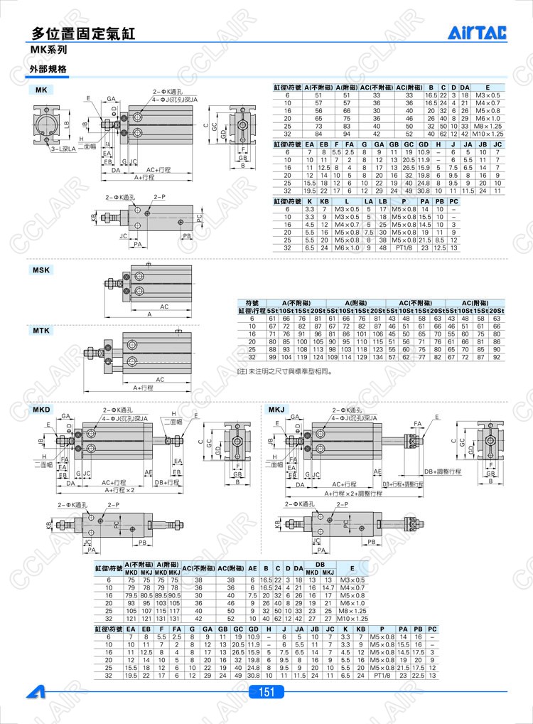 MK6*5,MK6*5-S,MSK6*5,MSK6*5-S,MTK6*5,MKD6*5,MKJ6*5,AIRTAC亞德客多位置固定氣缸