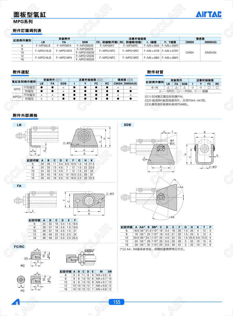 LB6,LB8,FA6,FA8,SDB6,SDB8,FC/RC6,FC/RC8,亞德客AIRTAC面板型氣缸附件
