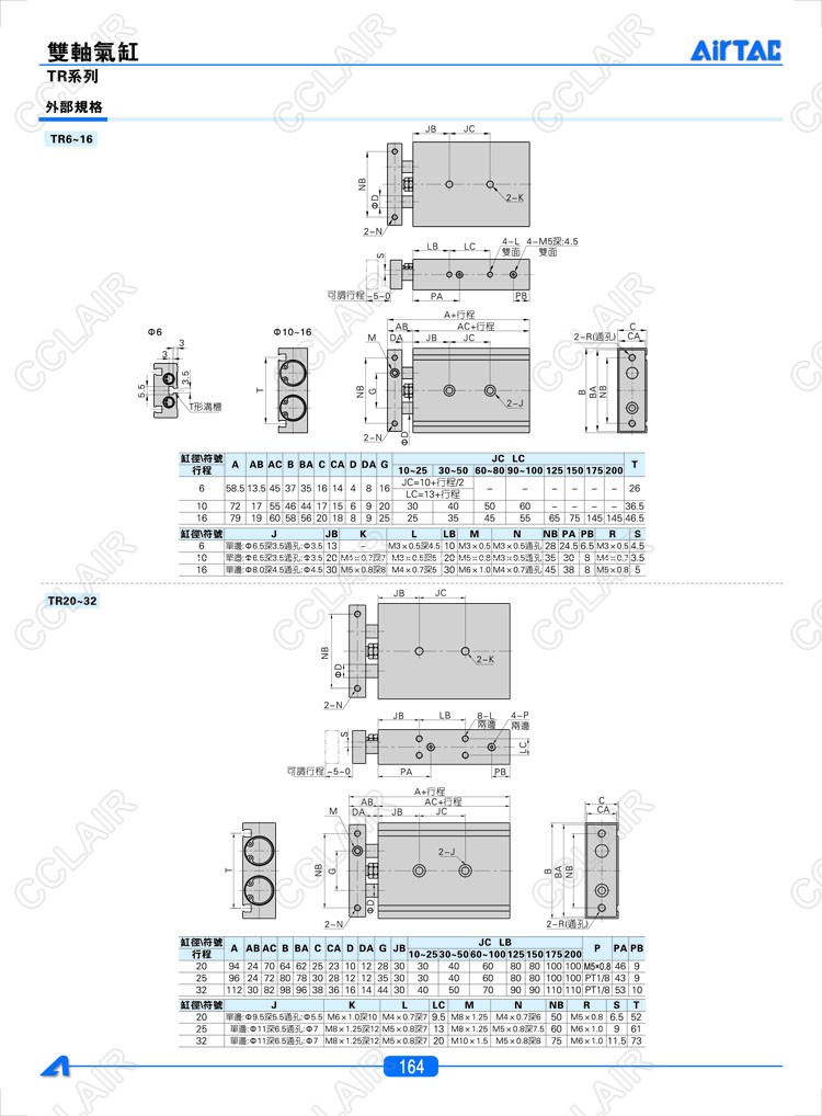 TR10*10-S,TR16*10-S,TR20*10-S,TR25*10-S,TR32*10-S,AIRTAC亞德客雙軸氣缸