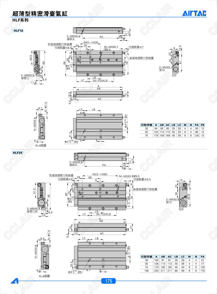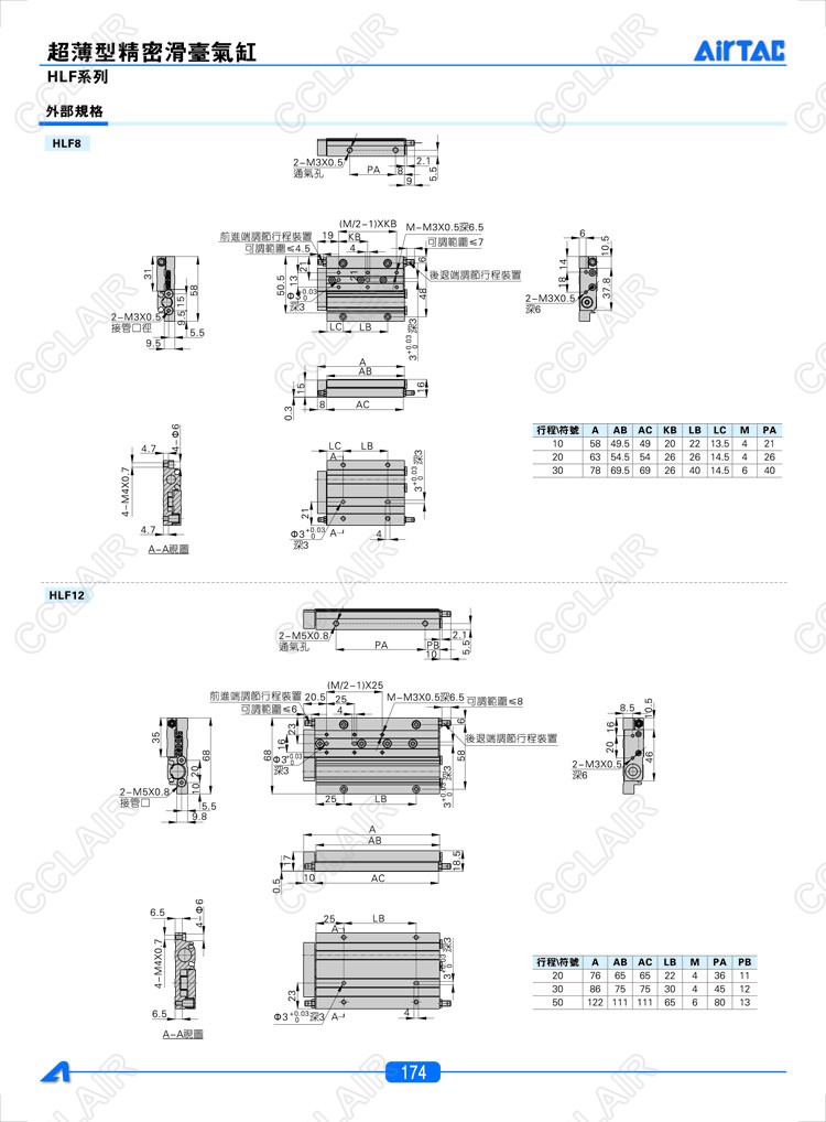HLF8*10-S,HLF8*20-S,HLF8*30-S,HLF12*20-S,HLF12*30-S,AIRTAC亞德客超薄型精密滑臺氣缸