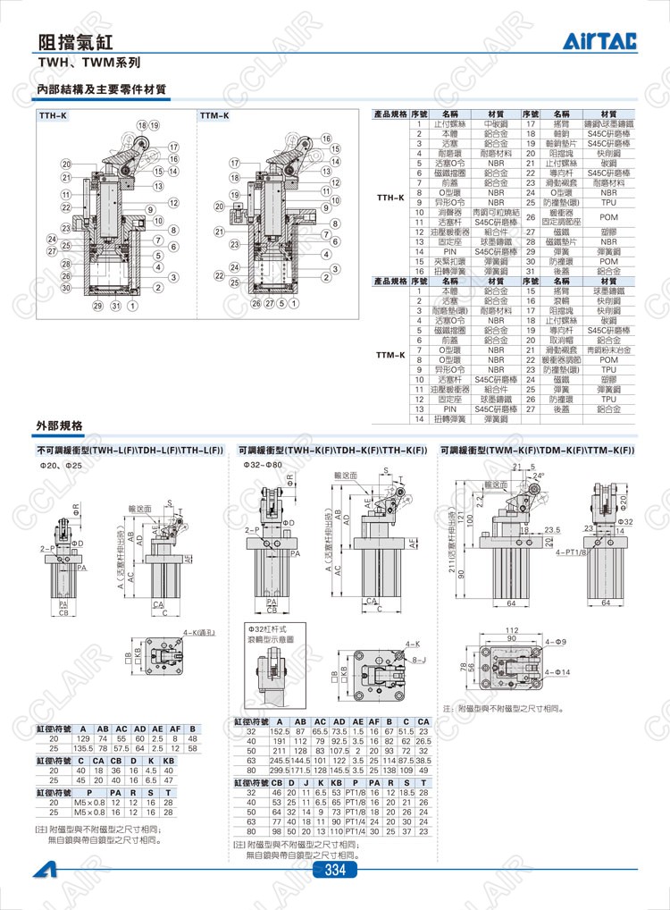 亞德客AIRTAC,TWH20*15-L,TWH20*15-S-L,TWH20*15-K,TWM50*30-K,TWM50*30-S-K,TDM50*30-K,阻擋氣缸