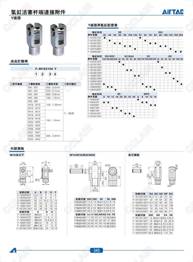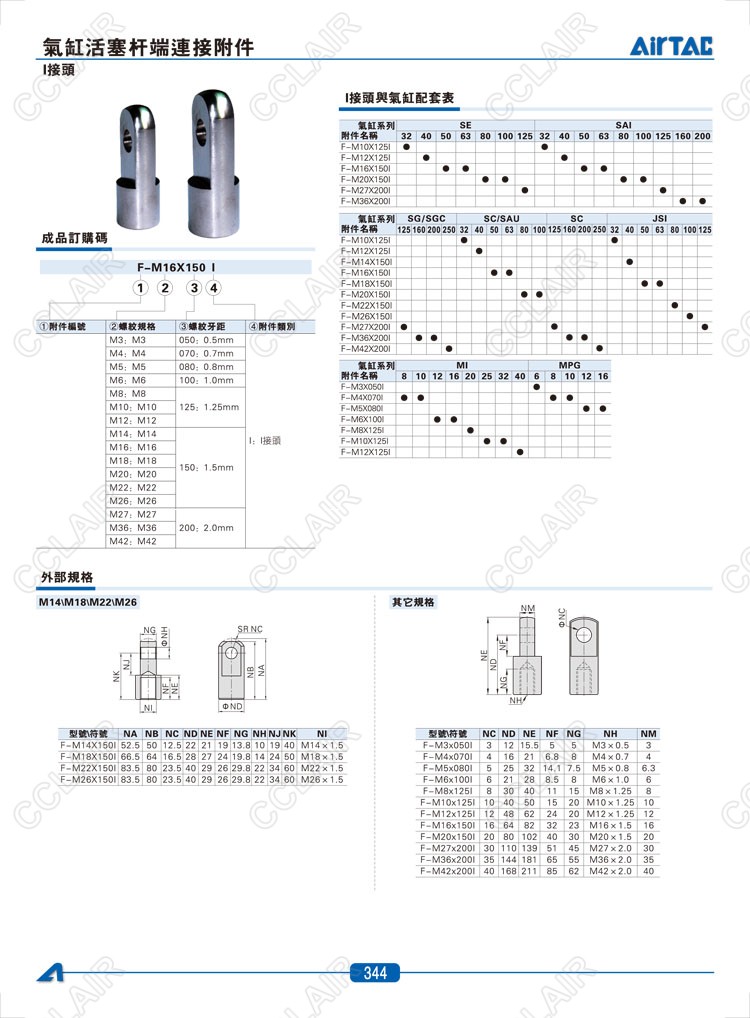 亞德客AIRTAC,F-M14X150I,F-M3X050Y,F-M4X070F,F-M6X100U,氣缸活塞桿端連接附件