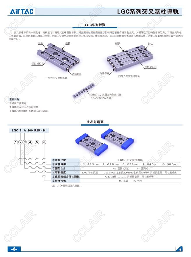 亞德客AIRTAC,LGC1A20,LGC1A30,LGC2A30,LGC2A45,LGC3A50,LGC3A75,LGC4A80,LGC4A120,交叉滾柱導(dǎo)軌