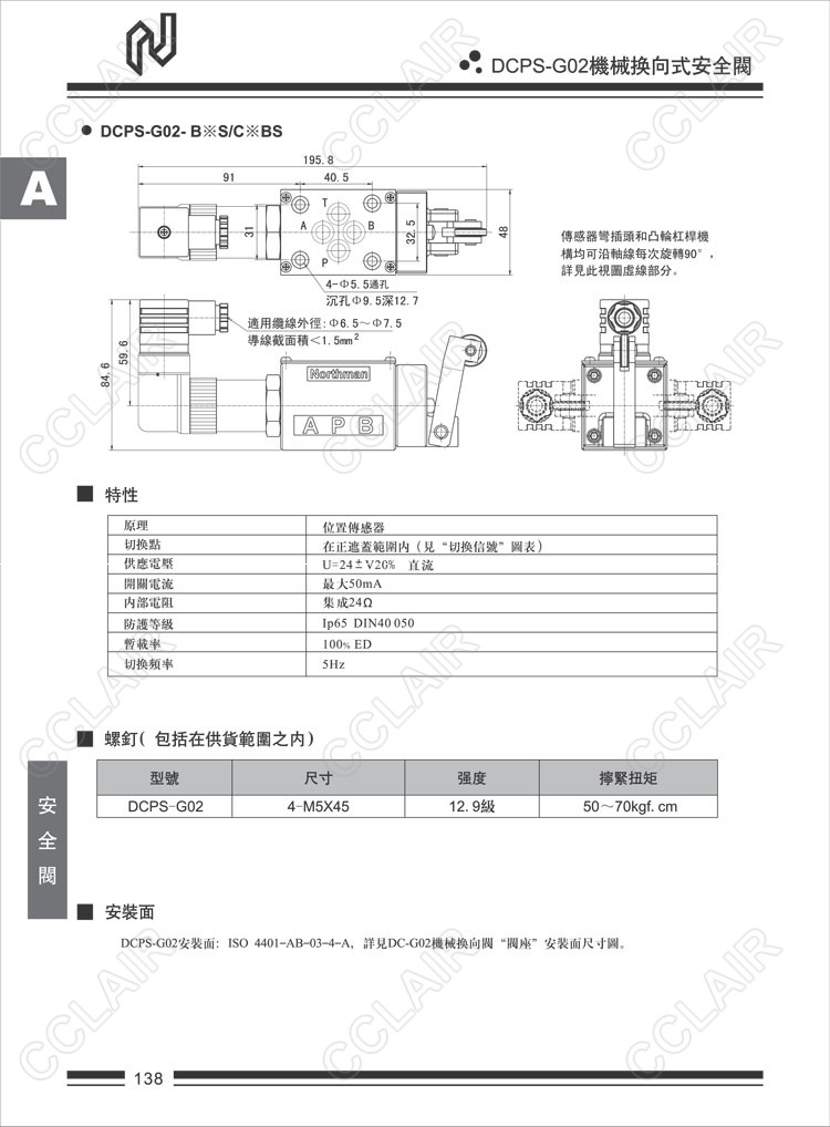 Northman北部精機,機械換向式安全閥DCPS-G02-B2-30,DCPS-G02-B2-30V,DCPS-G02-B2S-30,DCPS-G02-B2S-30V,DCPS-G02-C2B-30,DCPS-G02-C2B-30V,DCPS-G02-C2BS-30,DCPS-G02-C2BS-30V