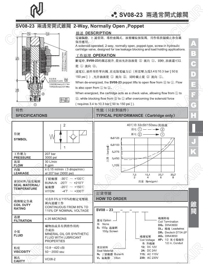 Northman北部精機,兩通常開式錐閥SV08-23S-N-0-DG,SV08-23S-N-0-DL,SV08-23S-N-0-DR,SV08-23S-N-230-DR,SV08-23S-N-230-AG,SV08-23S-N-230-AP,SV08-23S-V-115-DG,SV08-23S-V-115-DL,SV08-23S-V-230-AG,SV08-23S-V-230-AP