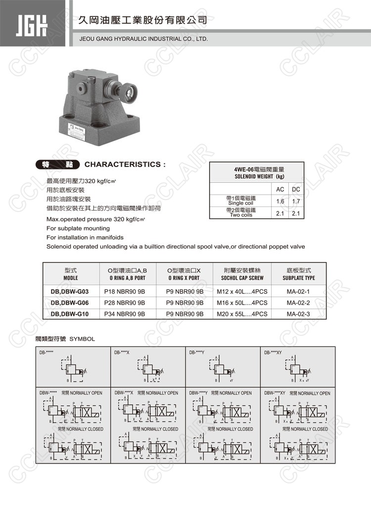 JeouGang臺(tái)灣久岡,電磁控制溢流閥DBW-G03-A-1-D-G12-10,DBW-G06-A-1-Y-Y-W220-10,DBW-G10-A-1-X-HA-W240-20,DB-G03-A-2-XY-HA-W110-10,DB-G06-A-2-HA-G12-10,DB-G10-A-2-XY-HA-W220-20,DB-G10-E-3-XY-HA-W240-10,DB-G10-E-3-XY-HA-W240-20