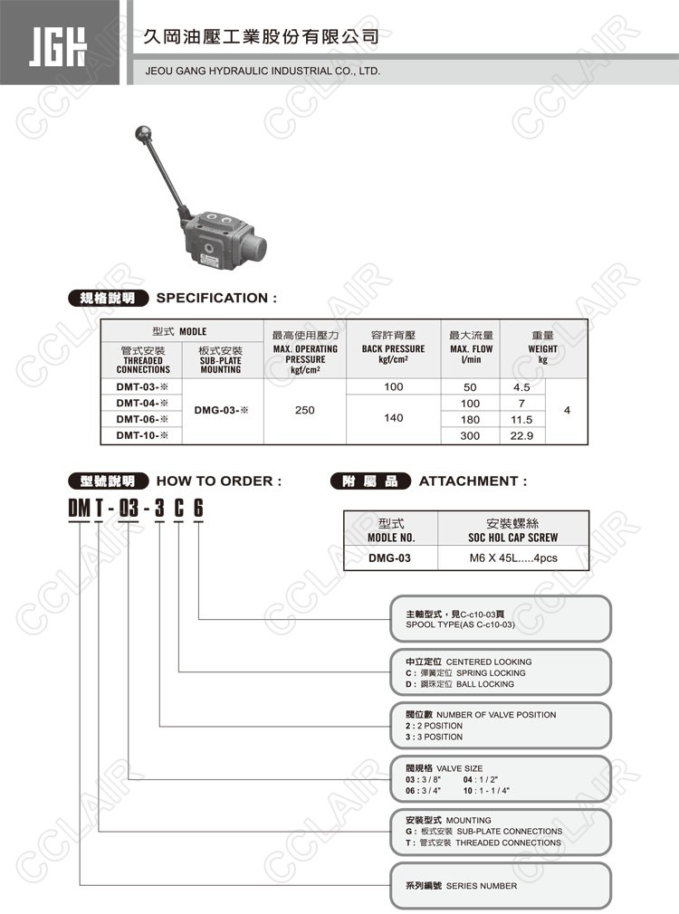 DMT-03-2-C-6,DMT-03-2-D-6,DMT-03-3-C-6,DMT-10-2-D-6,DMT-10-3-C-6,DMT-10-3-D-6,DMG-03-2-C-6,DMG-03-2-D-6,DMG-03-3-C-6,DMG-06-3-D-6,DMG-10- 2-C-6,DMG-10-2-D-6,DMG-10-3-C-6,DMG-10-3-D-6,JeouGang臺灣久岡,手動換向閥
