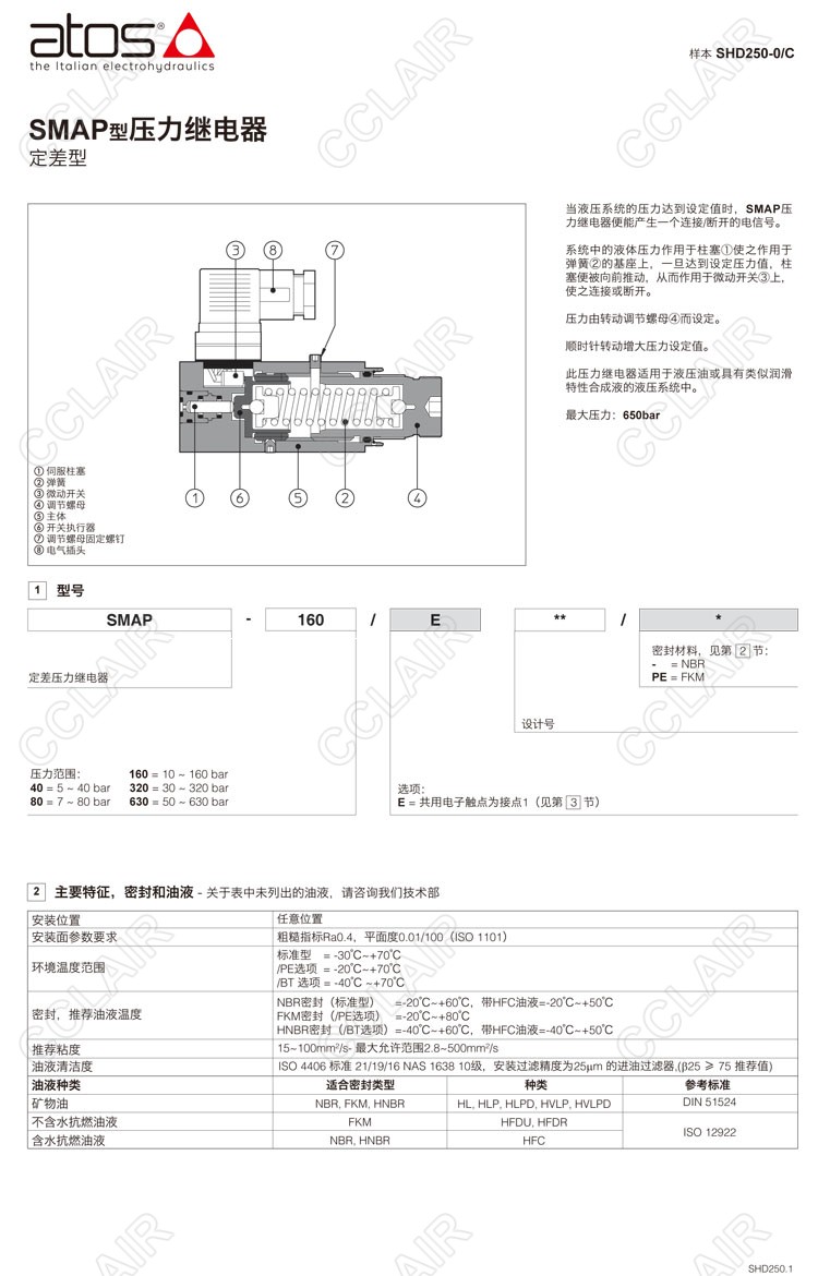 ATOS阿托斯,壓力繼電器SMAP-10/E,SMAP-80/E,SMAP-160/E,SMAP-320/E,SMAP-630/E