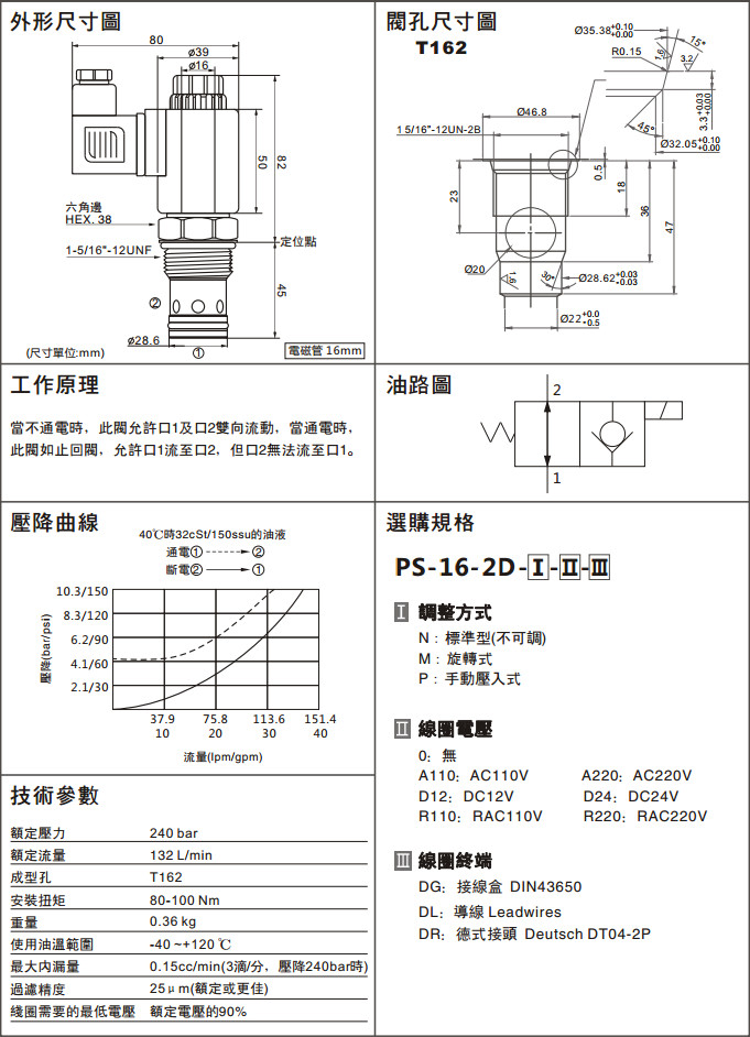 PS-16-2D-P-0-DR,PS-16-2D-P-A110-DR,PS-16-2D-P-D12-DR,PS-16-2D-P-R110-DR,PS-16-2D-P-A220-DR,PS-16-2D-P-D24-DR,PS-16-2D-P-R220-DR,兩通常開型電磁換向閥