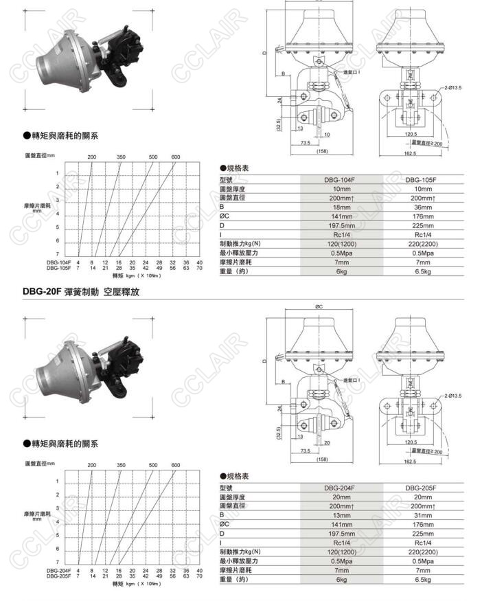 DBG-10F,DBG-104F,DBG-105F,DBG-20F,DBG-204F,DBG-205F,安全碟式彈簧制動器