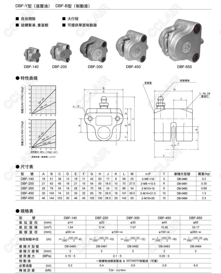 DBF-140,DBF-200,DBF-300,DBF-450,DBF-650,油壓蝶式制動(dòng)器
