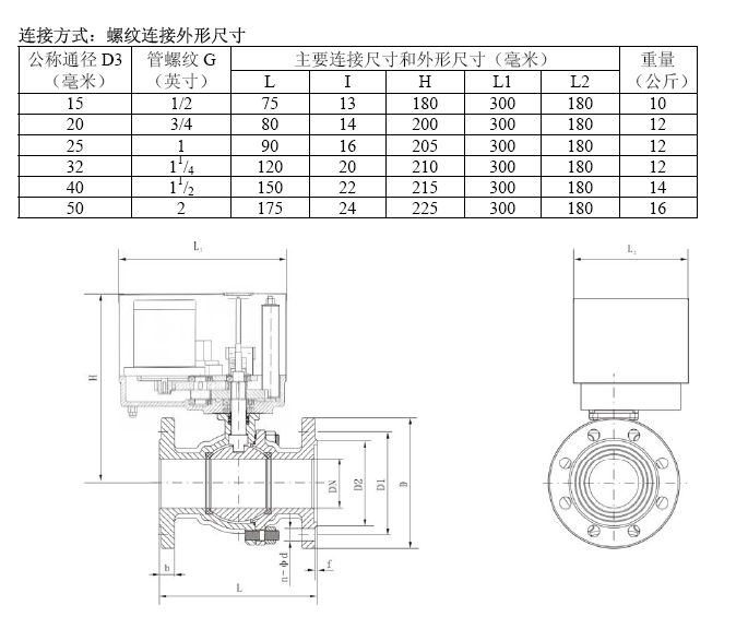 DQF-15,DQF-20,DQF-25,DQF-32,DQF-40,DQF-50,螺紋連接電動球閥