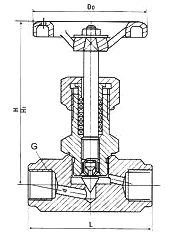 四、J13W不銹鋼內(nèi)螺紋截止閥主要外型及連接尺寸