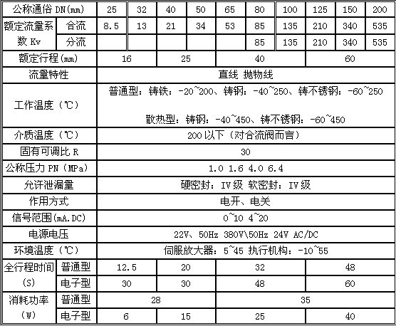 本系列產(chǎn)品公稱通徑由20至200mm,公稱壓力有1.0、1.6、4.0、6.4MPa,使用溫度范圍由-40℃~450℃,接受信號為0~10mA.DC或4~20mA.DC。其中電動單座調(diào)節(jié)閥適用于壓差較小,介質(zhì)粘度較大或稍有顆粒雜質(zhì)場合。電動套筒調(diào)節(jié)閥適用于壓差較大場合。按閥內(nèi)件密封部分材質(zhì)分又有金屬-金屬和非金屬-金屬密封兩種,后者閥關(guān)閉時泄漏量可達VI級(零泄漏)標準。按填料不同可分為一般填料密封和波紋管密封兩種,前者用一般場合,而后者用至不允許外漏的重要場合。流量特性為線性或等百分比。配用不同的執(zhí)行機構(gòu)可分為普通型和電子型兩種。多種多樣的品種規(guī)??晒┻x擇。