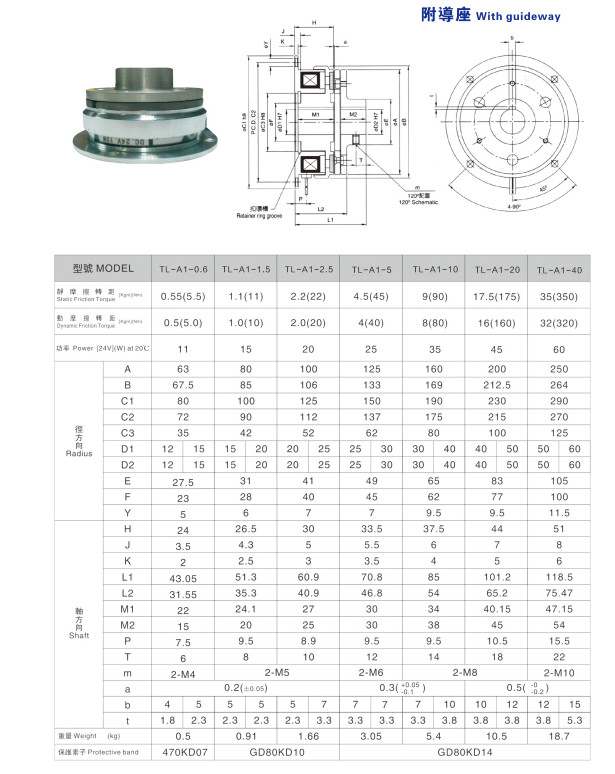 TL-A1-0.6,TL-A1-1.5,TL-A1-2.5,TL-A1-5,TL-A1-10,TL-A1-20,TL-A1-40,單片電磁離合器