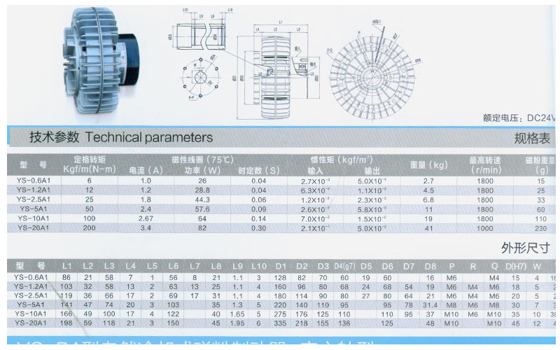 YS-0.6A1,YS-1.2A1,YS-2.5A1,YS-5A1,YS-20A1,YS-20A1,自然冷卻式磁粉離合器-空心軸型