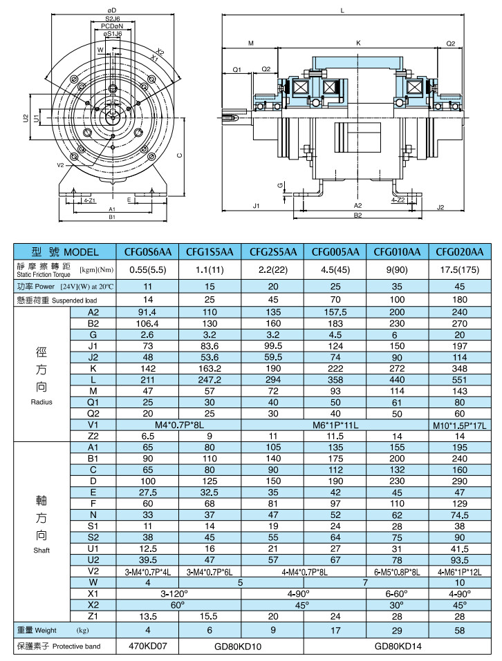 CFG0S6AA,CFG1S5AA,CFG2S5AA,CFG005AA,CFG010AA,CFG020AA雙電磁離合器內(nèi)嵌電磁剎車(chē)器組