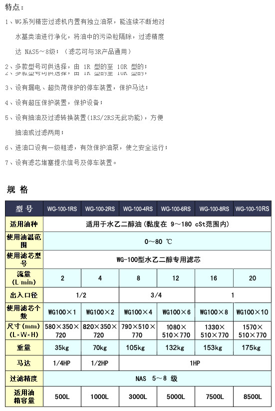 WG-100-1RS,WG-100-2RS,WG-100-4RS,WG-100-6RS,WG-100-8RS,WG-100-10RS,水乙二醇專用精密濾油小車