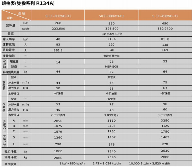 SICC-130WS-R3,SICC-188WS-R3,SICC-220WS-R3,SICC-260WD-R3,SICC-380WD-R3,SICC-450WD-R3環(huán)保冷媒水冷式中央冷水主機(jī)