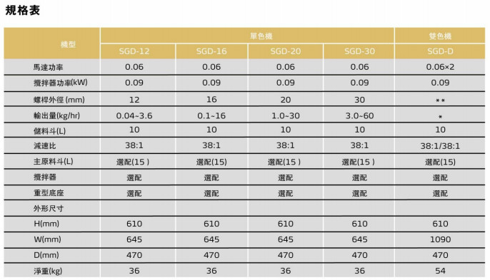 SGD-12,SGD-16,SGD-20,SGD-30,SGD-D,秤重式色母混合機(jī)