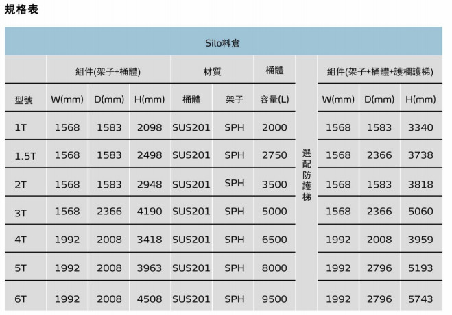 SS-1T,SS-1.5T,SS-2T,SS-3T,SS-4T,SS-5T,SS-6T,新型料倉