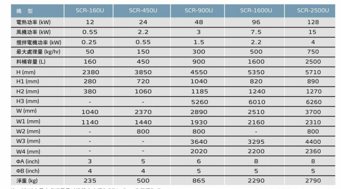 SCR-160U,SCR-450U,SCR-900U,SCR-1600U,SCR-2500U,PET結晶機