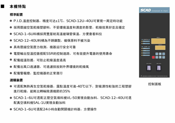 SCAD-1U,SCAD-3U,SCAD-6U,SCAD-12U,SCAD-20U,SCAD-40U,空壓式干燥機(jī)