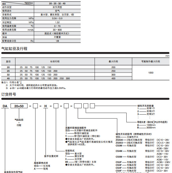 DA20*25-H,DA20*50-H,DA20*75-H,DA20*100-H,DA20*125-H,DA20*150-H,DA25*25-H,DA25*50-H,DA25*75-H,DA25*100-H DA25*125-H,DA25*150-H,DA25*200,DA32*25-H,DA32*50-H,DA32*75-H,DA32*100-H,DA32*125-H,DA32*150-H,DA32*200-H DA40*25-H,DA40*50-H,DA40*75-H,DA40*100-H,DA40*125-H,DA40*150,DA40*200-H,DA40*250-H,DA40*300-H