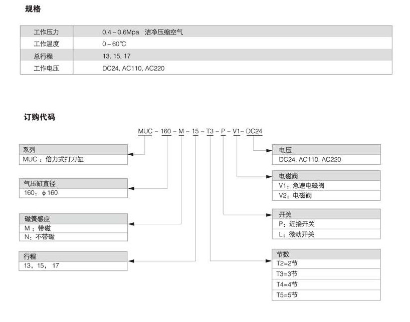MUC-160-M-13-T2,MUC-160-M-13-T3,MUC-160-M-13-T4,MUC-160-M-13-T5,倍力式打刀缸