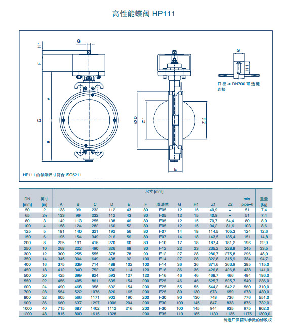 HP111 DN50,HP111 DN65,HP111 DN80,HP111 DN100,HP111 DN125,高性能蝶閥